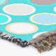 Mid-century Modern graphic design - large, retro bordered dots in soft, Southwestern colours and neutrals on a rich turquoise background