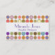 Business card with a Mid-century Modern graphic design - large, retro bordered dots in soft, contemporary colours on a white background