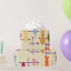 This wrapping paper has a mid-century modern atomic design of Easter eggs and bunnies. Fun, colourful, and festive for Easter.