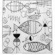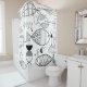 Mid-Century Modern Shower Curtain fish art. Whimsical and fun fish and abstracts in basic black and white.