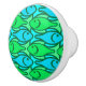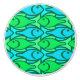 Mid-Century Modern design of stylised fish, alternating positive and negative space - mixed media graphic in shades of soft to medium jade green, aqua and turquoise blue, accented with dark teal green