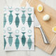 Mid Century Modern Fish Pattern Turquoise Tea Towel