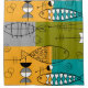Mid-Century Modern Shower Curtain fish art.  Whimsical and fun big fish in orange, avocado on a teal and grey  background with various abstract shapes.