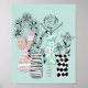 These fun, whimsical flowers were created using pen and black ink. The vases were created using splashes of watercolor in modern hues of pink, teal and gold green and black. The design is personalised with either a name, date or a special message. You choose! Or you can remove it all together. This would make a great birthday gift for a lover of art.