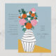 Share your wedding date with this midcentury-inspired floral design featuring a striped ceramic vase and bold illustrated blooms. The folk art styling and modern colour palette create a creative, design-forward feel perfect for art lovers and contemporary celebrations. A clean layout keeps the focus on your names while the illustration adds personality and charm.