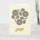 Pictured above is our Mid-Century Modern Spiral Floral Thank You Card in Graphite with Saffron Orange and Green Accents. This 5 x 7 inch folded note card features a beautiful geometric floral motif made from a unique spiral design which forms an ornate patterns within each flower and leaf, arranged in an interlocking triangular pattern against a light beige background. The backside of this card is blank leaving plenty of room for you to write a note or a personal message to say hello. Optional white envelopes are also available.