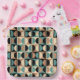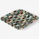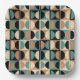 Retro Mid Century Geometric Half Square and Circle Pattern Black Beige and Turquoise.