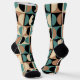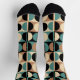 Retro Mid Century Geometric Half Square and Circle Pattern Black Beige and Turquoise.