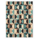 Retro Mid Century Geometric Half Square and Circle Pattern Black Beige and Turquoise.