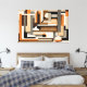 This striking geometric abstract artwork blends mid-century modern aesthetics with a contemporary edge. Featuring bold, dimensional shapes in a neutral palette of beige, taupe, browns, and warm grey, the design is elevated by burnt orange accents and subtle 3D effects that add depth and intrigue.