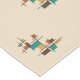 A vintage styled abstract art design, inspire by the 1950s atomic era movement, has bold lines and colourful square & rectangles in turquoise, orange, yellow and brown against a tan background.