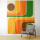 Retro Mid Century Modern Geometric Design in Brown Orange Yellow & Green.