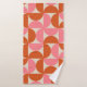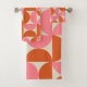 Mid century modern geometric pattern pink orange bath towel set