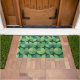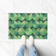 This is Abstract retro mid century geometric shapes in green and teal on black background