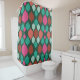 Gorgeous Mid Century Modern Green Geometric Shower Curtain design that is full of retro colours and shapes that include the pink, turquoise and coral colours! Buy today!