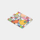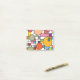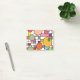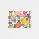 These Post-It notes have a mid-century modern design of a grid with some rectangles colored in and circles on top in retro colors.