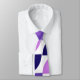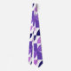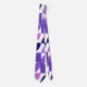 This tie has a mid-century modern design of quarter and half circles in shades of purple.
