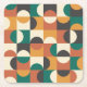 Mid Century Modern Half circles green and orange Square Paper Coaster