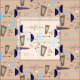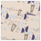 Mid-Century Modern Half Moons Fabric in a space age inspired design in shades of blue on a cream background.