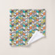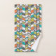 This towel set has a mid-century modern design of herringbone with retro colours and lines filling some of the spaces.