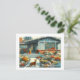 Mid Century Modern Home with Cat Announcement Postcard