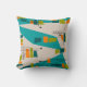 Mid-Century Modern Pillow, design in teal, lime green and orange boomerangs and atomic design. Perfect for any mid-century modern decor.