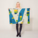 Mid-Century Modern Inspired Fleece Blanket, designed according to the mid-century and atomic era time period in colours of blue, yellow, black and lime green.