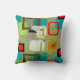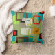 Mid-Century Modern Pillow, abstract design in black, red, teal and grey on an olive green background. Perfect for any mid-century modern decor.