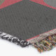 A quality printed throw has its advantages. This is a much finer weave throw than its loopier cousins, and though lighter, it is worth the investment for custom room accessorizing. The back is much prettier than the typical brown, and the fringe on the long sides very vivid, the selvage nicely done. Before photographing, I washed the throw in cold water, delicate, with a thicker woven throw the same size. On tumble dry low, this throw was dry in half the time as the other. This is a very practical quality if you use throws for furniture covers or to wrap up in frequently. The sleekness of the fabric makes it a great layer for accenting or protecting without the feeling of sitting on too much stuff. Perfect for napping or when you feel a light chill coming on. The color printing is beautiful and on this fabric, matched the design and color of my Photoshop image. This is an advantage for blending room fabrics and colors. The fringe on the short sides prints the colors from the design image and therefore varies from the side fringe. I streaked a white fractal line through the plaid pattern to give the illusion of weaving. This printed as crisp as an illusory thread, and put some white in the short side fringe, showing another advantage of print vs loomed- for artistic purposes, line lines, detail, and color integrity can be planned and preserved. My loomed throws have color limitations and more of a needlepoint texture. Print throws reproduce an exact image. The throw felt a little stiff straight out of the package, but this went away in the first delicate wash. Of course I searched the wash water for ink or bleeding and there was none.