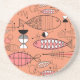 Mid-Century Modern fish art. Whimsical and fun fish and abstracts in basic black and white on salmon orange with retro drink coasters.