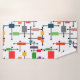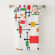 This towel set has a mid-century modern design of a large grid of horizontal and vertical black lines with colourful rectangles.