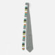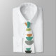 This necktie has a mid-century modern design of semicircles stacked in three in retro colours on a field of white.