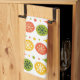 Mid Century Modern orange red rain drops asterisk Kitchen Dish Towel - A classic design from the mid century in an updated fashion. A hand drawn asterisk is inside the rain drop looking designs. Orange, red, green on a white background. It's a great design for all year. These dish towels are so awesome. The colours are vibrant and they are hard wearing and look great as a decor item, place mat or as a dish towel!