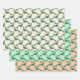 These gift wrap sheets feature a Mid Century influenced pattern of simple palm tree graphics in orange and green set around a boomerang shaped oasis or swimming pool in a vivid aqua blue. The background colours may be edited.
