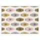 This retro abstract art design was inspired by atomic era patterns. It has hexagons in desaturated brown, tan and pink.