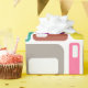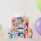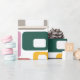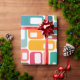 This wrapping paper has a mid-century modern design of rectangles with a white hole in retro colours.