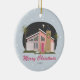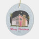 Mid Century Modern Pink House Christmas Ceramic Tree Decoration
