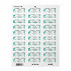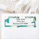 These return address labels have a mid-century modern design of skewed rectangles with white holes in shades of blue-green.