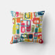 This throw pillow has a mid-century modern design of colourful rectangles overlapping each other. Fun and bright.