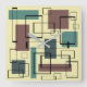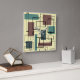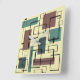 A unique 1950s pop art style yellow pattern with lines and colourful squares & rectangles.
