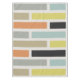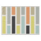 A mid century modern abstract art pattern with long vertical rectangles in multiple colours of light turquoise green, gold, beige or tan, yellow, orange, and black.