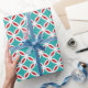 COLOR PALETTE: turquoise, teal, aqua blue, red, and white. DESIGN COLLECTION: Modern retro mid century modern, mod bold graphic design style, made with overlapping circles for a pleasing geometric pattern. This wrapping paper is good for either gender with its strong print style. Inspired by vintage midcentury designers patterns, this is a contemporary version. We can design this with any 3 colours, just message us and we'll be happy to custom design it for you.