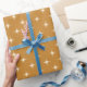 Mid century modern wrapping paper features atomic star pattern in retro mustard yellow. The cute starburst is a cool midcentury classic.