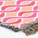 Mid-Century Modern design of intertwined ribbons in deep coral pink and fuchsia, accented with white, on a pastel coral orange background