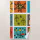 This beach towel has a mid-century modern design of a smorgasbord of mid-century modern graphics in retro colours.