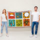 This throw blanket has a mid-century modern design of a smorgasbord of mid-century modern graphics in retro colours.