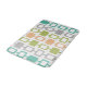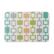 A simple minimalist pattern inspired by 1950s atomic era abstract art, with columns of rounded squares in orange, chartreuse green, turquoise, and grey.