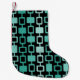 Mid Century Modern Square Columns Black Aquamarine Small Christmas Stocking