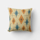 This retro-inspired atomic era design has blue and orange diamond shapes, sputnik starbursts, and bold lines.