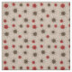 A mid-century modern starburst pattern. Colours are red and brown on a light brown background.